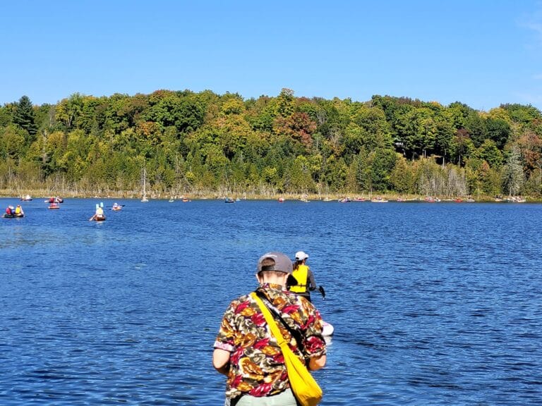 Over two hundred folks attended the Paddle and Parade Party on Saturday, September 16, 2023 on Highland Line near McDonalds Corners in Lanark County. The goal for this gathering was to draw attention to the two gravel pits being proposed by Cavanagh Construction Limited and the expansion of the existing gravel pit owned by Arnott Brothers Construction Ltd. All three gravel pits are applying for a licence to go below the water table.